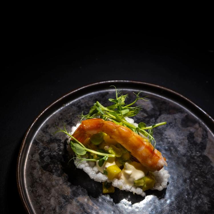 Succulent shrimp wrapped in crispy sago, served with vibrant exotic carpaccio for a balance of texture and freshness. Vegan option: Plant-based “shrimp” in crispy sago with exotic carpaccio.